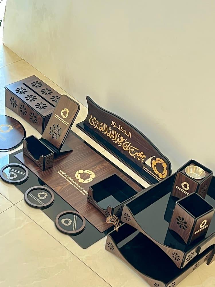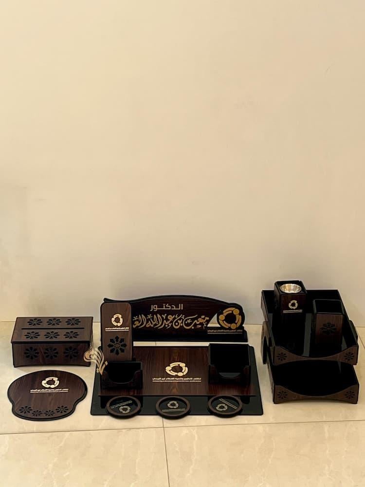 طقم مكتبي ملكي خشبي مكون من 11 قطعة